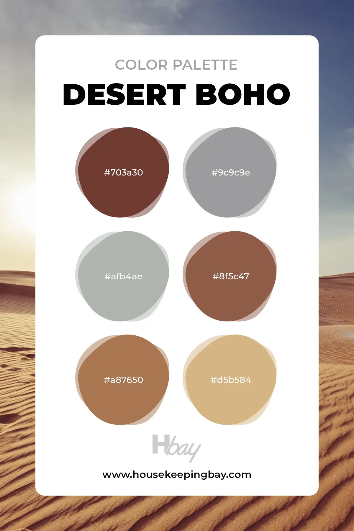 For a more subdued yet warm monochrome option, consider the Desert Boho palette. This mix features calming colors like: