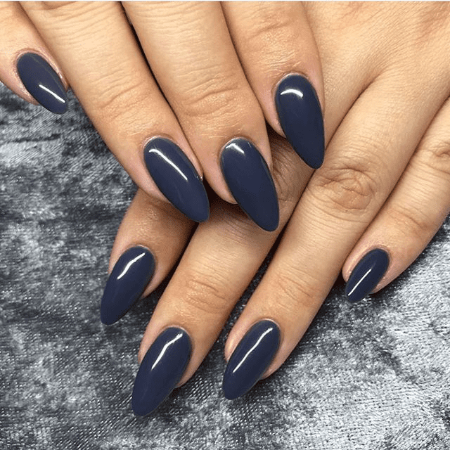 Turn heads with long and sharp acrylic navy blue nails. The dramatic length and sharp points create a statement-making silhouette that demands attention. The deep navy blue hue complements the boldness of the shape, creating a look that’s both sophisticated and edgy. This manicure is perfect for those who embrace a fashion-forward style and want nails that can keep up. However, keep in mind the practicality of such a long length – it might not be ideal for everyday tasks. But for a special occasion or when you want to feel truly glamorous, long and sharp acrylic navy blue nails are a surefire way to make a lasting impression.