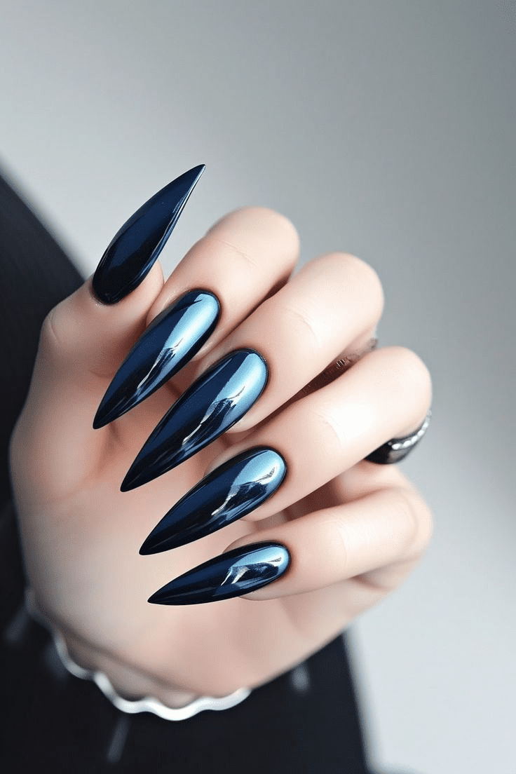 DRAMATIC & LONG STILETTO NAVY BLUE NAILS