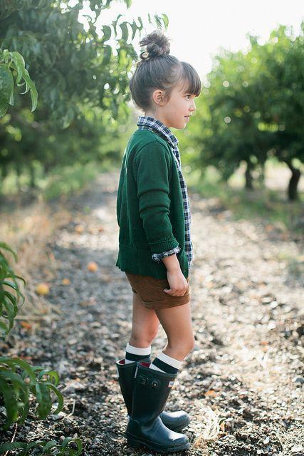 This fun fall outfit features a pair of brown shorts that offer a comfortable fit for active kids. The warm brown color perfectly captures the autumn season, creating a cozy and earthy vibe. Layered on top is a stylish plaid shirt, introducing a playful pattern and a splash of color to the look. The plaid design is both trendy and timeless, making it an excellent choice for fall outings. To keep your little one warm, an emerald cardigan completes the outfit. The rich green color of the cardigan creates a beautiful contrast, while the soft knit fabric provides extra warmth as temperatures drop.