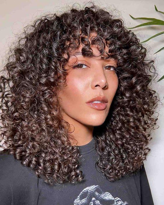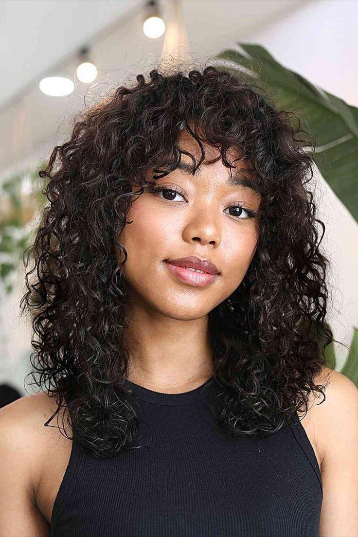 Add a touch of allure to your curly hairstyle by incorporating a fringe. Whether you let a few curls fall softly over your forehead or sweep a fuller set forward, a fringe can instantly create the look of more volume and bounce, enhancing your overall style.
