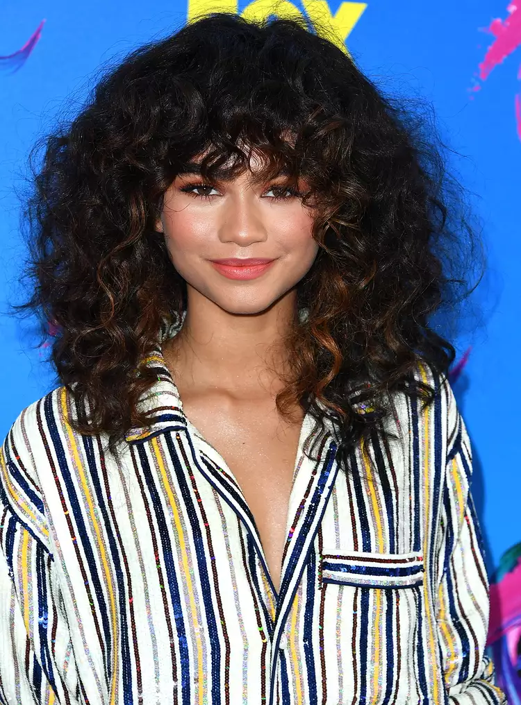 Zendaya is known for being a hair chameleon, but one of our favorite looks on her is this curly shag. It’s full of volume, with thick bangs that frame her face beautifully. Subtle chestnut highlights accentuate the shorter layers near the front, adding depth and dimension. “I’ve seen some amazing curly hair shags that are very soft and wispy,” says Bennett.