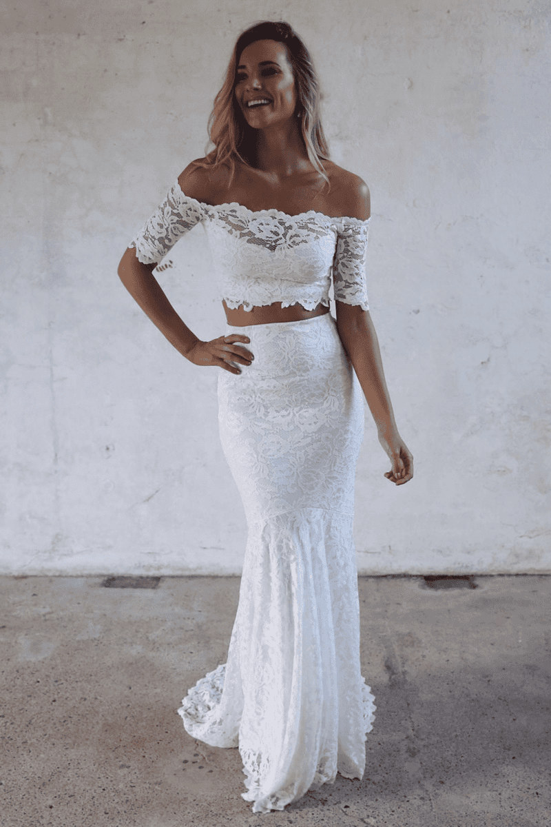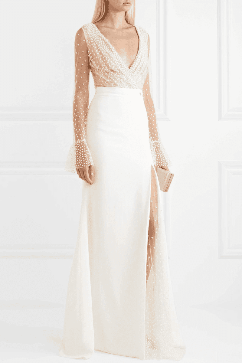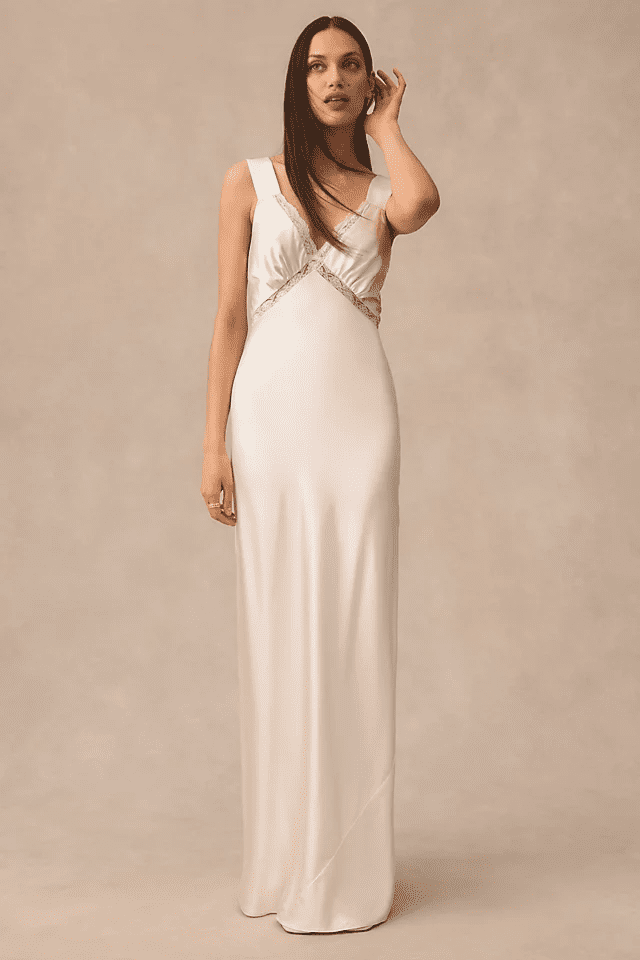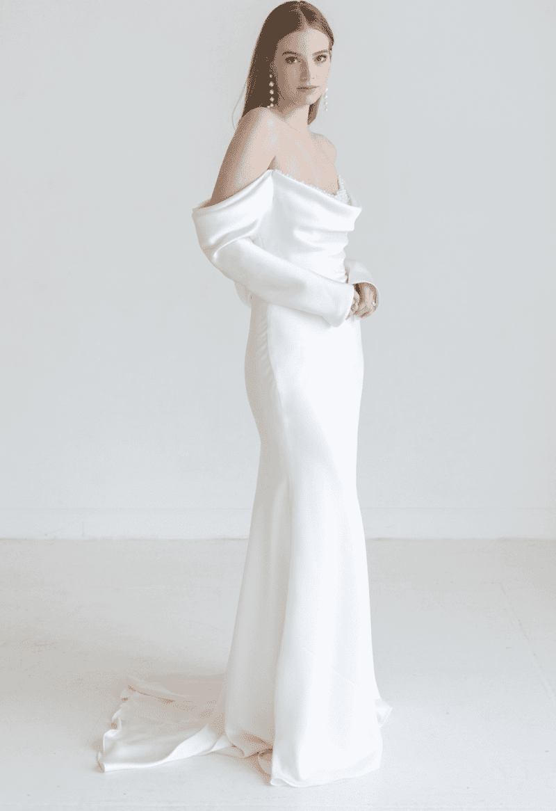 The Danielle Frankel Dan Dress and Theo Skirt are perfect examples of wedding dresses inspired by the 1920s. These pieces combine modern elegance with vintage charm. The Dan Dress features delicate details and a graceful silhouette, reminiscent of the flapper style. Paired with the Theo Skirt, it adds a touch of sophistication and flowy movement, capturing the essence of the roaring twenties. Brides looking for a blend of old and new will find these dresses ideal for their special day.