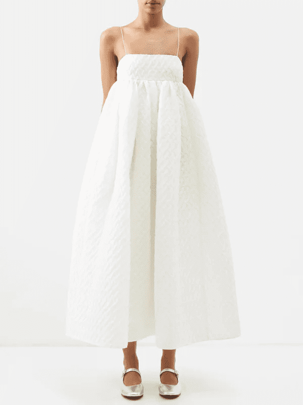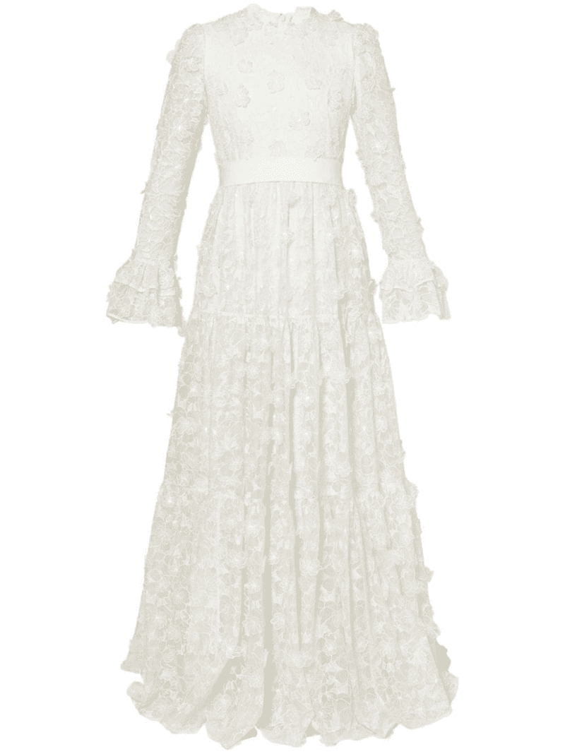 The Markarian Jasmine White Silk Faille Gown is a stunning choice for a wedding with a 1920s theme. This gown is made from luxurious white silk, giving it a smooth and elegant look. The design is simple yet sophisticated, with clean lines and a timeless silhouette. It has a vintage feel that captures the glamour of the 1920s, making it perfect for a bride who wants a classic and elegant wedding dress. The Markarian Jasmine gown is a beautiful blend of old-fashioned charm and modern style, ideal for a memorable wedding day.
