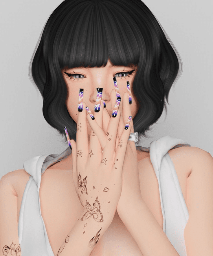 Euno Sims’ nail pack is an absolute delight! With a variety of adorable patterns and shapes, your Sims can rock any style from sweet and girly to edgy and cool. The attention to detail is incredible, making these nails a must-have for any fashion-forward Sim.