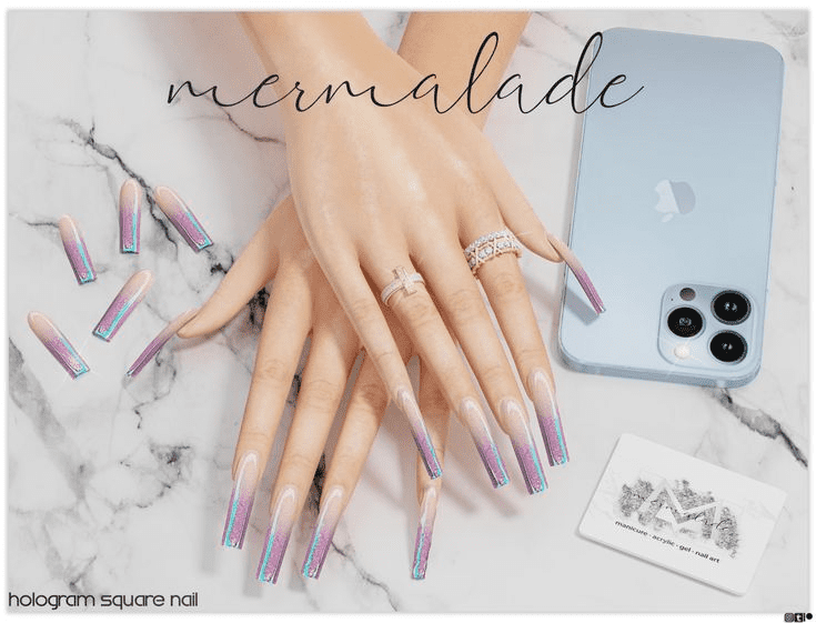 LONG HOLOGRAM SIMS 4 NAILS CC PACK – MERMALADE