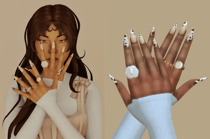 Sims4snoww’s Spring Nails CC set is a delightful collection of custom content perfect for capturing the essence of springtime. With a variety of pastel colors, floral patterns, and fresh designs, these nails will add a touch of whimsy to your Sims’ appearance. Whether you’re dressing up for a garden party or simply enjoying the warmer weather, these nails are sure to complement your Sim’s springtime style.