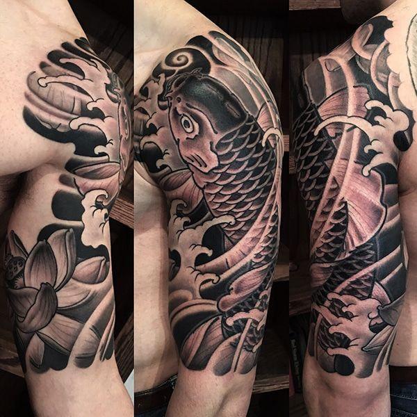 KOI FISH KANJI TATTOO ON ARM