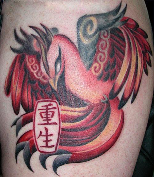 KANJI PHOENIX TATTOO ON THIGH