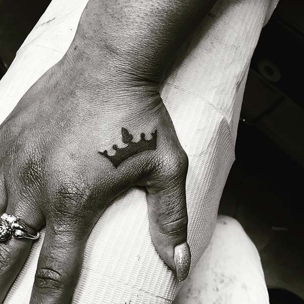 For a trendy and understated look, consider a crown tattoo on your finger. It’s effortlessly chic and can be covered with a ring if needed.