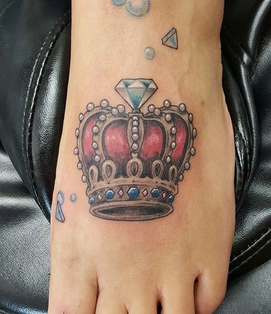 Crown and diamond tattoos also look stunning on the foot. Customize this luxurious design with your favorite colors or keep it classic with traditional hues.