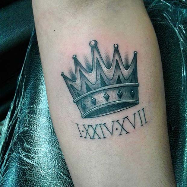 Combine a bold crown with Roman numerals to commemorate a significant date, like a birthday or wedding anniversary. Enhance the design with flowers or colors for a more personalized touch.