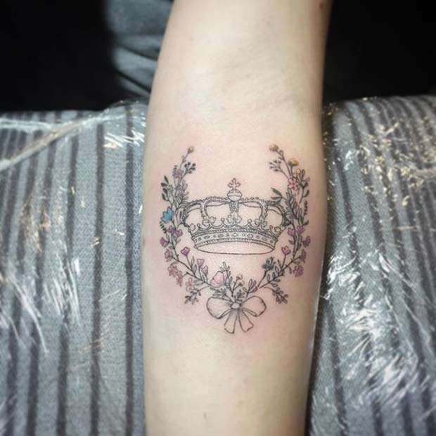 A floral crown tattoo offers a stylish and unique twist on the classic crown design. Incorporate your favorite flowers or add color to make it even more special.