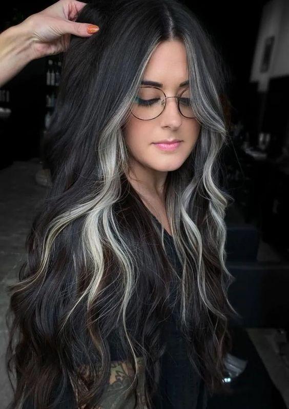 Black hair with ash highlights is a stylish and modern look that combines the deep richness of black hair with cool, ash-colored highlights. This mix creates a striking contrast and adds depth and dimension. The ash highlights can range from soft, subtle gray tones to bolder, more noticeable colors. This allows for a customized look that fits different skin tones and personal styles, adding a touch of sophistication and a modern edge to black hair.