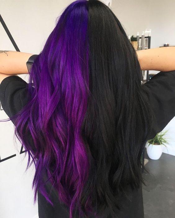 Purple and black hair is great because it can be styled in many different ways. The bold color mix looks amazing with various hairstyles, from sleek and straight to loose curls or fancy updos. Adding different styling techniques and accessories can make the purple and black colors stand out even more, giving a unique and personalized look. This striking combination blends the deep black with bright purple, allowing for a creative expression of personal style. It adds a touch of charm and individuality to your appearance.