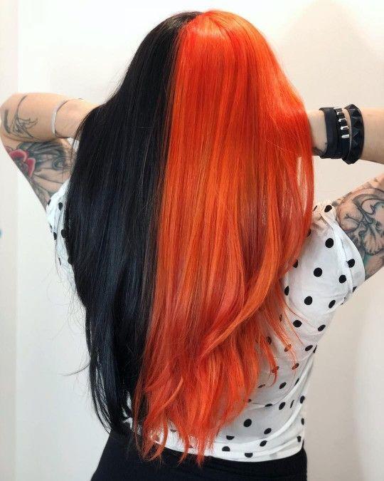 Orange and black hair is a bold, eye-catching combination that creates a unique and striking look. The warmth of orange paired with the richness of black forms a dynamic contrast that instantly draws attention. There are several ways to incorporate orange into black hair. One option is adding orange highlights or a balayage effect, where sections of the hair are dyed orange. This adds pops of color throughout the black, giving it depth and visual appeal.