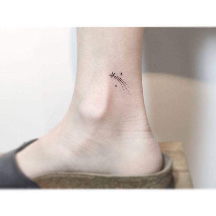 For those seeking an adorable tattoo, consider our next idea. A petite yellow star has been delicately tattooed onto the ankle, complemented by a background color and additional surrounding star shapes. You can opt for a similar tattoo, experimenting with a different color for the star or even forgoing the background for a unique touch.