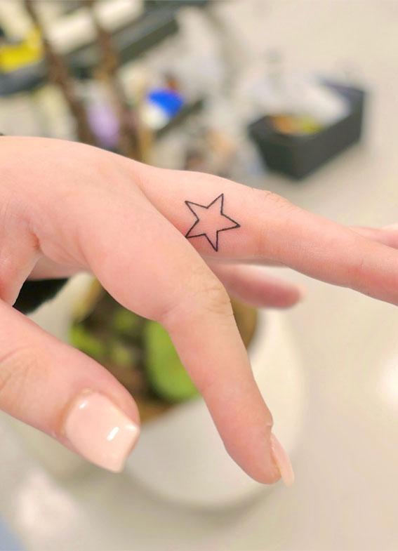 Here’s another concept featuring a star outline, this time inked onto the finger. Finger tattoos exude a super cool vibe, and when paired with a star outline, it creates a stylish and trendy tattoo. Additionally, you can explore the option of having a star tattoo with an outline in a different color for added flair.