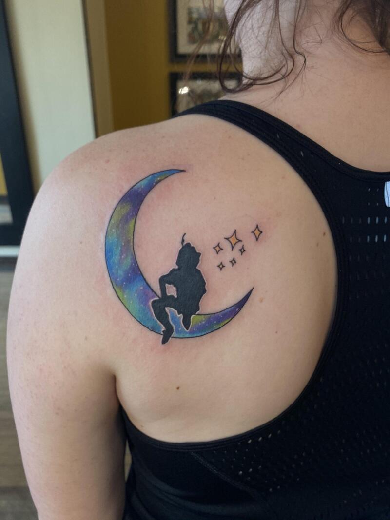Our following suggestion features a stunning moon and stars tattoo idea. This beautiful tattoo begins with a deep blue hue and gracefully transitions into a lighter blue. Its enchanting appearance holds universal appeal and would suit anyone. If you’re considering a similar design, you have the flexibility to explore different colors to create a personalized version.