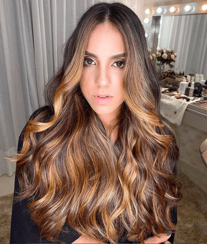 Another suitable name for this color could be “brunette balayage,” as it entails highlighting the hair with hand-painted strokes of color that ascend from the ends up to the mid-lengths of the hair. While balayage is often linked with blonde hair transformations, this trend demonstrates its suitability for brunettes as well.