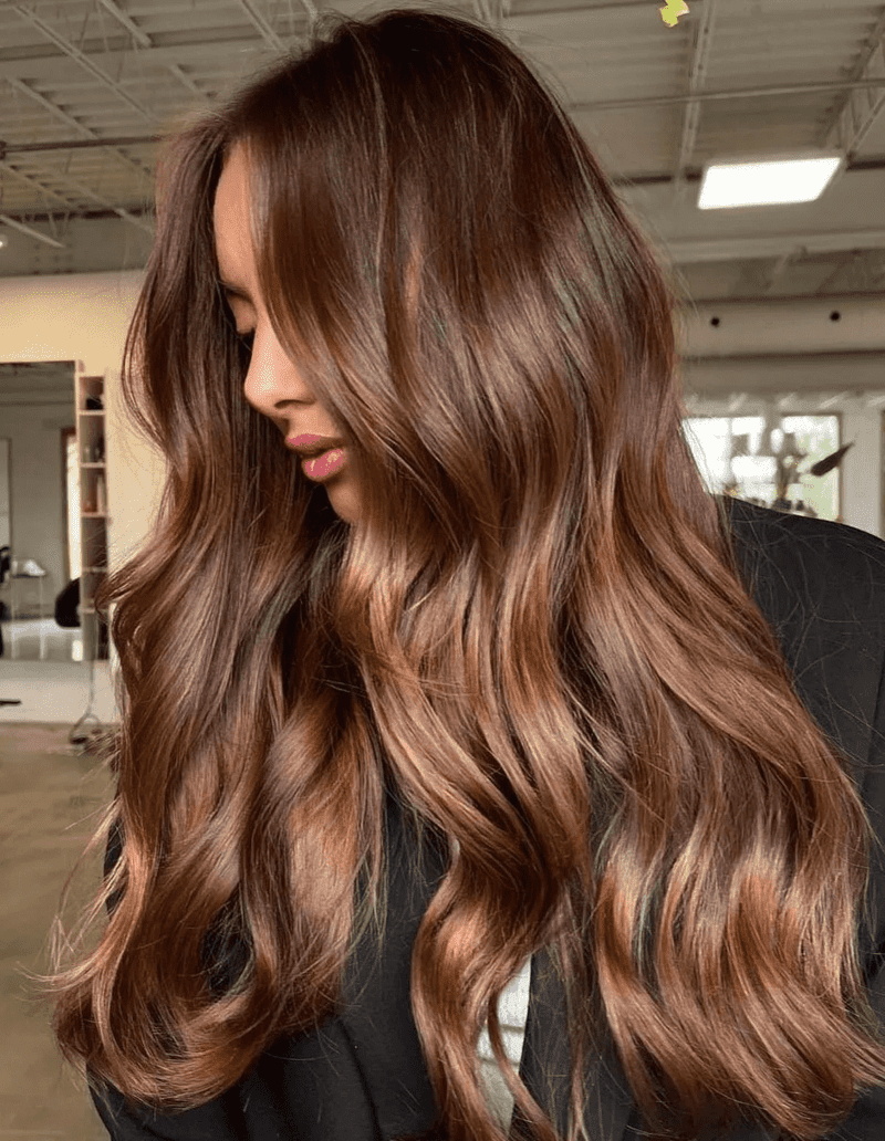 Chestnut hair color is trending. Embrace the rich, reddish-brown shade for a full-headed transformation or subtly enhance your brunette base with chestnut streaks. This versatile hue adds warmth and depth to any hair color.