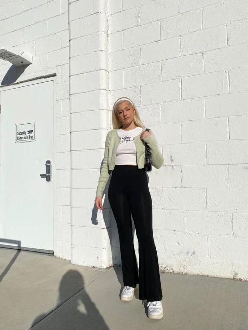 Flare leggings are a flattering choice that can give the illusion of height and slimmer legs. Their unique style adds intrigue to your outfit. For a laid-back yet stylish look, pair them with a plain top in a neutral color. This combo is perfect for a relaxed yet fashionable vibe.