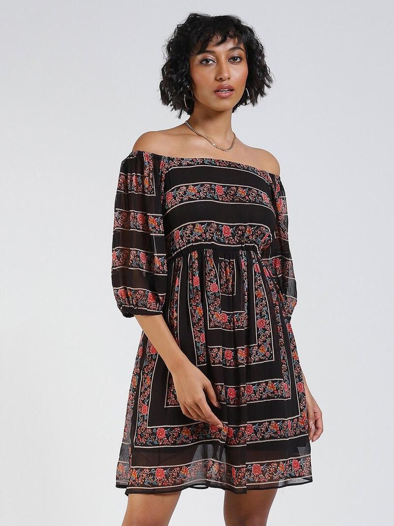 Label Ritu Kumar offers a diverse selection of off-the-shoulder dresses to cater to various styles and occasions. Whether you’re searching for a casual daytime look or a dressy ensemble for a summer evening, their collection promises something for everyone. They often utilize flowy fabrics like chiffon or viscose rayon, creating silhouettes that range from fit-and-flare with short sleeves to breezy maxi dresses. The brand is known for its focus on intricate prints and vibrant colors, so you might find floral designs, geometric patterns, or even solid colors to suit your taste. With price points that fall under the category of affordable luxury, Label Ritu Kumar’s off-the-shoulder dresses are a perfect way to embrace the summer trend while showcasing a touch of Indian design heritage.