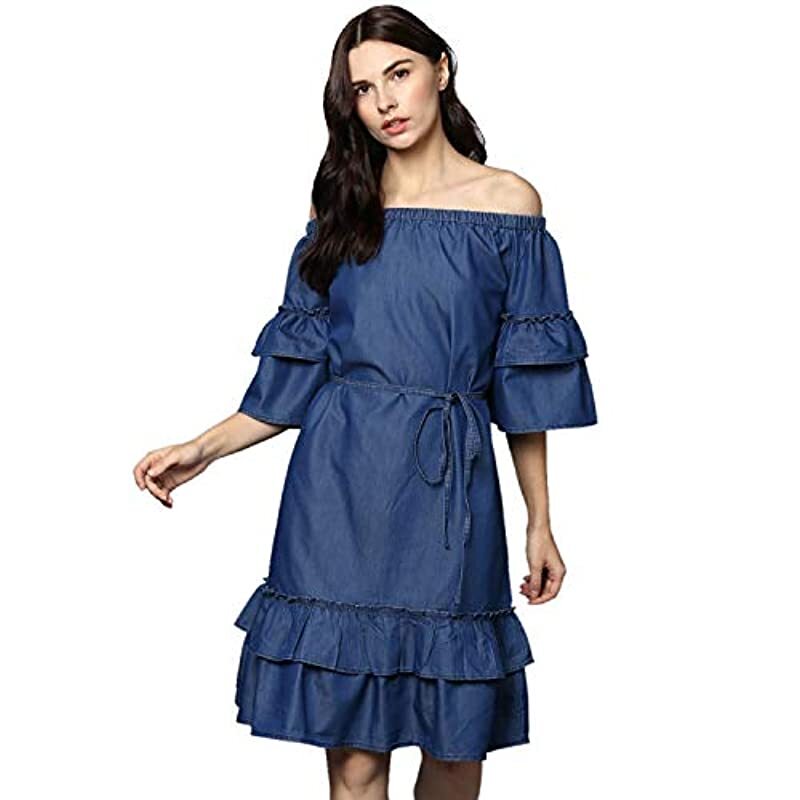 STYLE STONE WOMEN’S DENIM OFF SHOULDER DRESS
