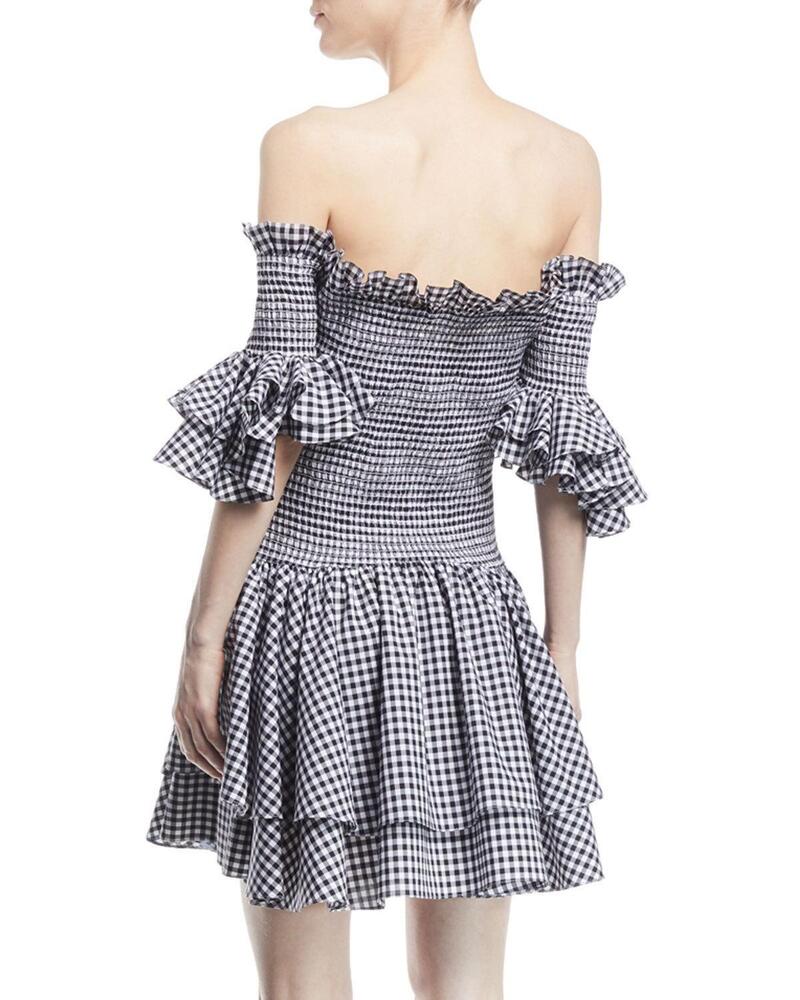 The Caroline Constas Kendall off-the-shoulder dress is a summer essential, reflecting the jetset lifestyle synonymous with the brand. It boasts a signature off-the-shoulder neckline adorned with seductive ruffle detailing, complemented by a flattering bustier bodice that accentuates the waist. Crafted from lightweight cotton, this dress is perfect for breezy summer days. Available in a range of styles, from classic plaid to sleek black, the Kendall Dress offers versatility for any occasion. Whether opting for a timeless look or a more sophisticated vibe, this piece can be dressed up or down effortlessly. Pair it with sandals and a straw bag for a laid-back daytime ensemble, or elevate it with heels and statement earrings for a night out. Consider adding classy black nail designs to complete the look with a touch of elegance