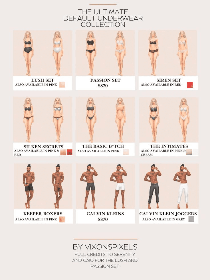 SIMS 4 DEFAULT UNDERWEAR CC PACK – VIXONSPIXELS