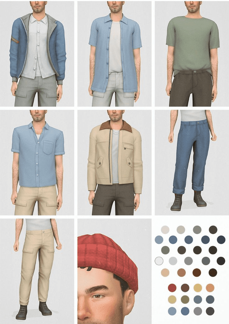 Did you know fashion isn’t just for humans? Our Sims need to look sharp too! For all the creative and stylish Simmers out there, check out the Blue Collar Sims 4 Male CC Pack. This pack includes six versatile items: a fisherman cap (perfect for those summer vibes), tucked and open tees, a button-up shirt, a jacket, cargo pants, and rolled pants. From casual outings to stylish everyday wear, this collection ensures your male Sims are always looking dapper. Trust me, my Sim man always turns heads with these pieces in his wardrobe!