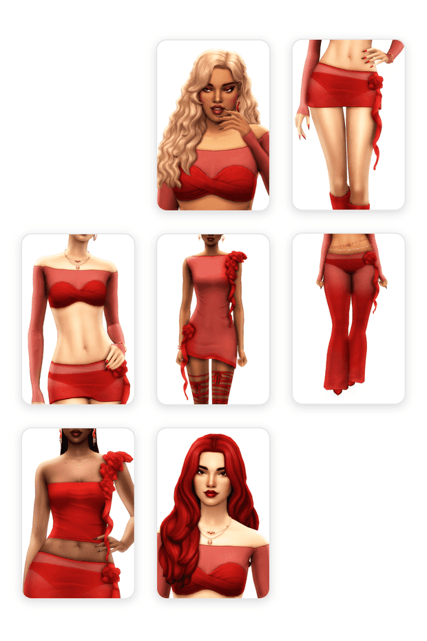 Kick off your summer nights in style with the Sangria custom content clothes pack! The flowy hair is a standout, making your Sim look like a true goddess. With two options each for tops and bottoms, plus a stunning full-body outfit, this pack offers endless mix-and-match possibilities for any event. Trust me, your Sims will turn heads and steal the spotlight in these chic and bold pieces from Greenllamas.
