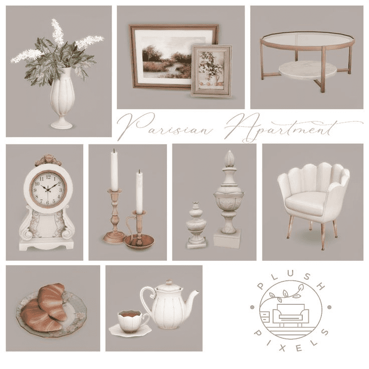 SIMS 4 PARISIAN STYLE FURNITURE CC PACK – PLUSH PIXELS
