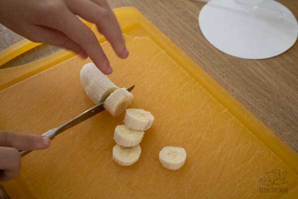 Step 1: Cut up half a banana into slices and then quarter these slices to make it easier to mash.