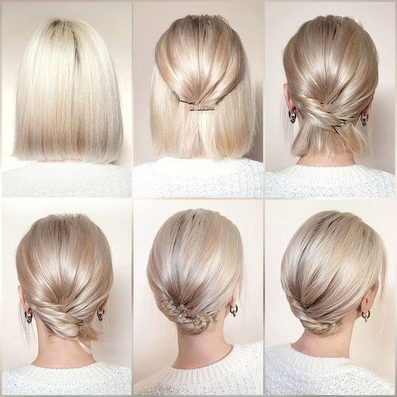 Whether you want to make your everyday style a bit fancier or find the perfect prom hairstyle, you can easily create beautiful updos with short hair. All you need are some bobby pins and a bit of hairspray to achieve a look that’s classy and timeless. Start by gently teasing the top of your hair for some volume, then sweep your hair back and pin it in place. You can add a pretty hairpiece or some delicate flowers to make your updo extra special for prom. Enjoy your short hair with this stylish and simple look!