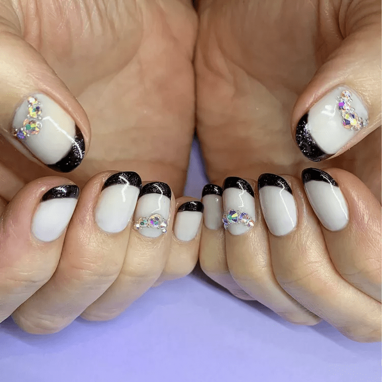 This design takes inspiration from the French manicure but flips the script. Instead of highlighting the tips, the base of the nail is the star. Leave the natural crescent moon shape bare or paint it in a contrasting shade for a bolder look. A baby blue base coat with a clear or subtle shimmer at the moon creates a clean and sophisticated look. This design flatters all nail lengths and is perfect for those who love a touch of vintage flair with a modern edge.