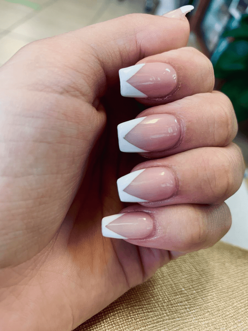 Absolutely! French manicures are timeless and always chic. This gorgeous inspiration picture perfectly demonstrates how the classic look can be updated with a modern twist. The clean lines and subtle baby blue hue create a sophisticated yet approachable look. The best part? You can achieve this same long-lasting elegance with gel polish!