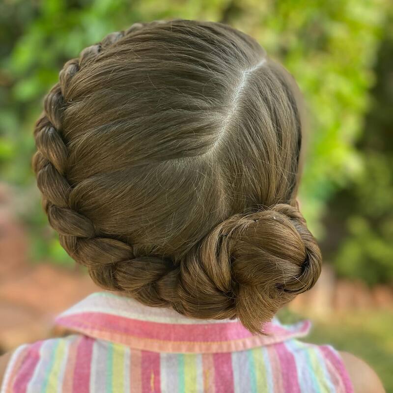 The braided bun with a side part is a flexible hairstyle that works for any hair type and occasion. The deep side part gives a fresh twist to a classic look. To create it, use a comb to make a clean side part, then braid your hair and form a bun on the opposite side to keep everything balanced.