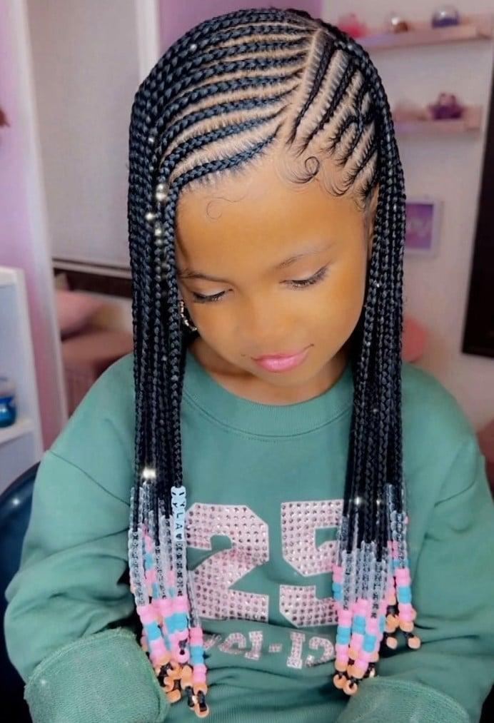 To showcase your new hairstyle, try combining a deep side part with French braids. This will accentuate the added shape and volume from the French braids along the sides of your head. For an extra touch, consider adding colorful beads, glitter, or hair rings to the braids.