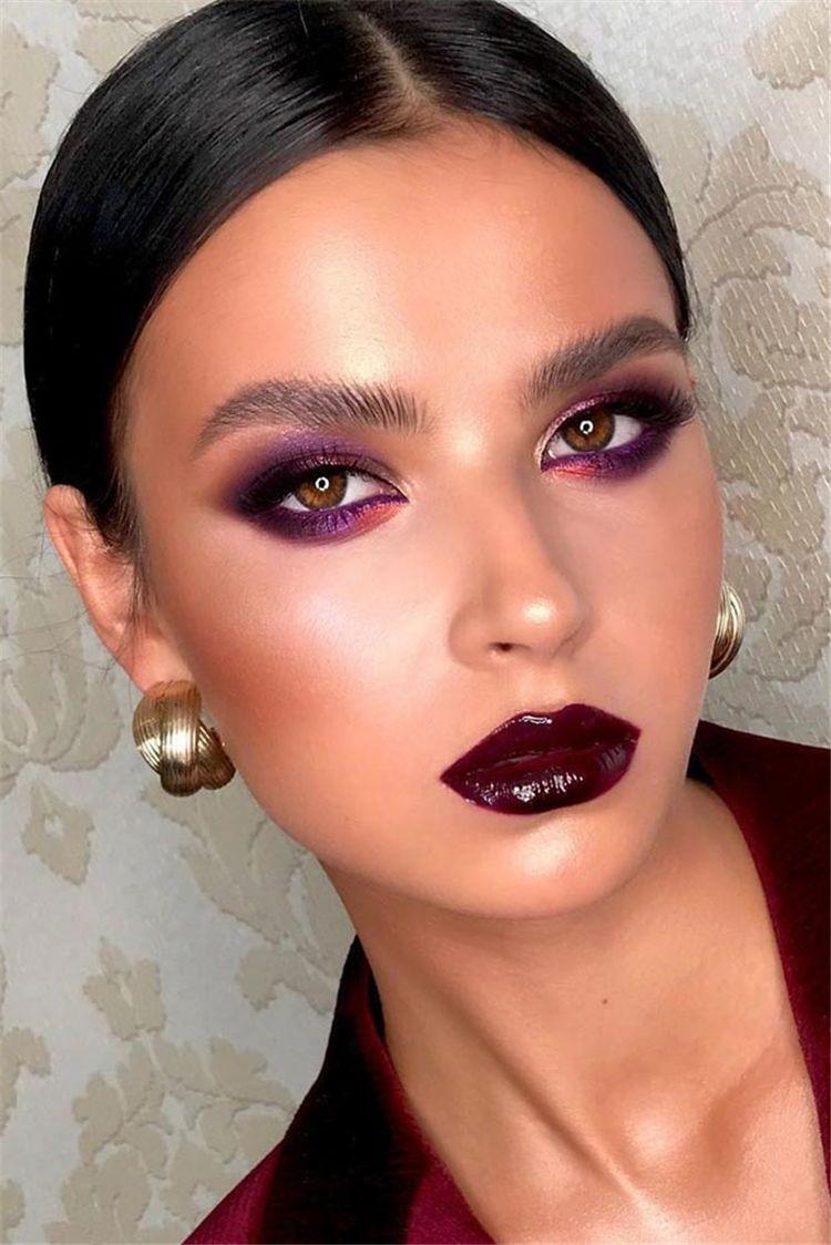 Ready to shift away from cuteness? How about magenta smokey eyes paired with dark plum lipstick? You can even use the same plum shade for contouring to add a unique twist to the overall look!