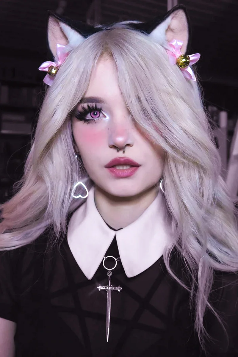 Imagine an e-girl cosplay featuring vibrant pink circle lenses and adorably flushed cheeks—because there’s never too much blush for the Lolita girls! To complete the look, a pair of fluffy cat ears adds the perfect Kawaii touch!