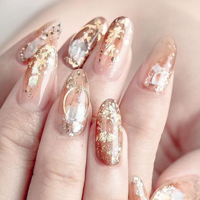 The base color is beautifully complemented by the addition of delicate sequins, offering a touch of shimmer without being overpowering. The sequins add a refined sparkle and a hint of glamor, enhancing your nails with a sophisticated and elegant finish.