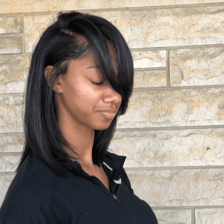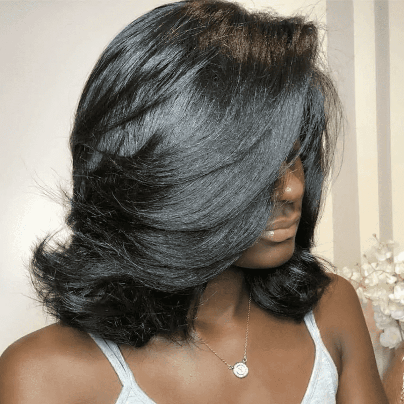 FEATHER CURL BOB WITH SIDE PART BANGS