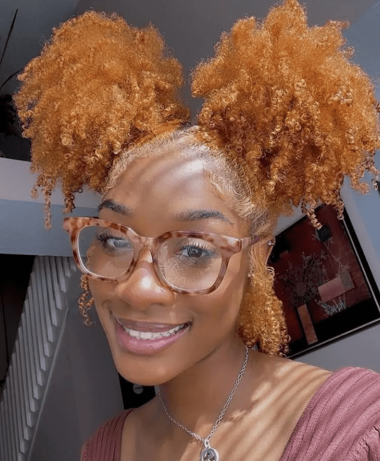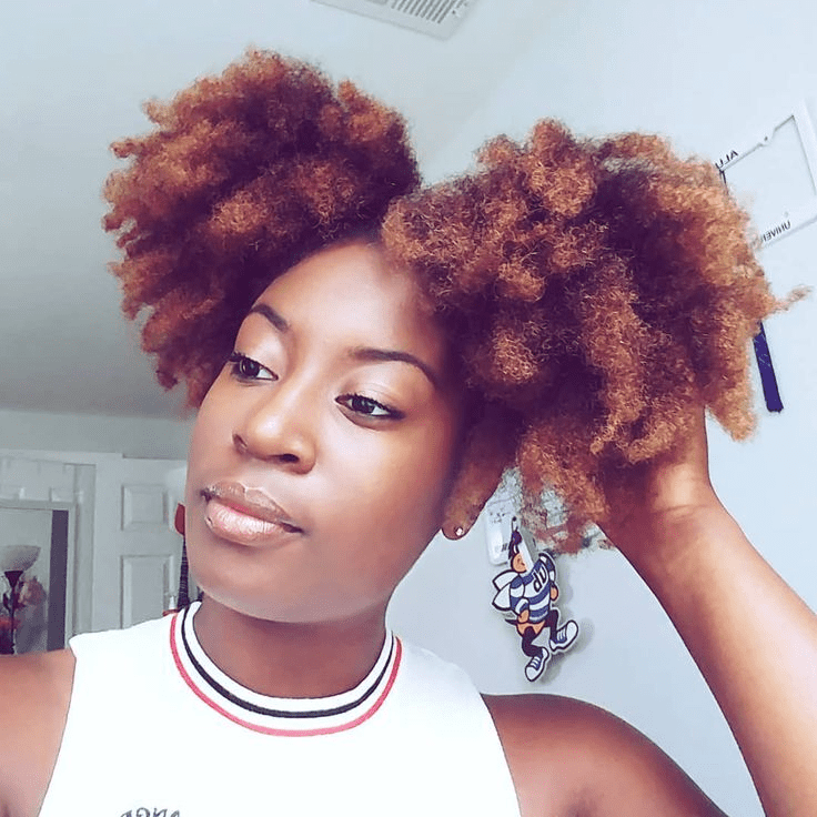 TWO CURLY NATURAL HAIR PUFFS ON GINGER HAIR