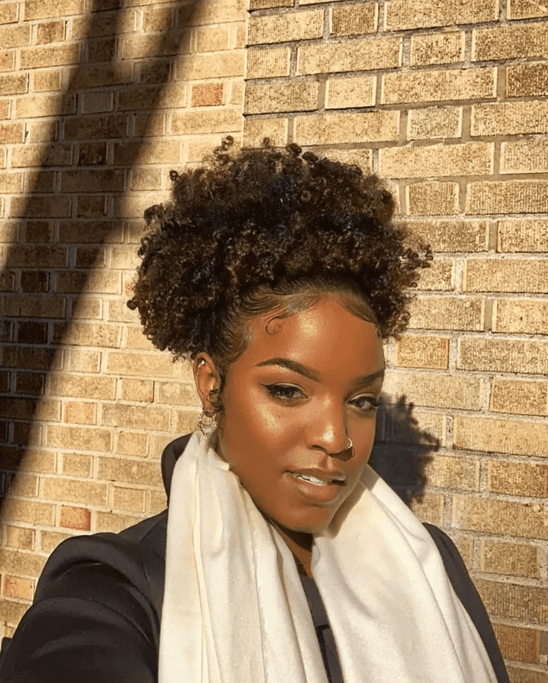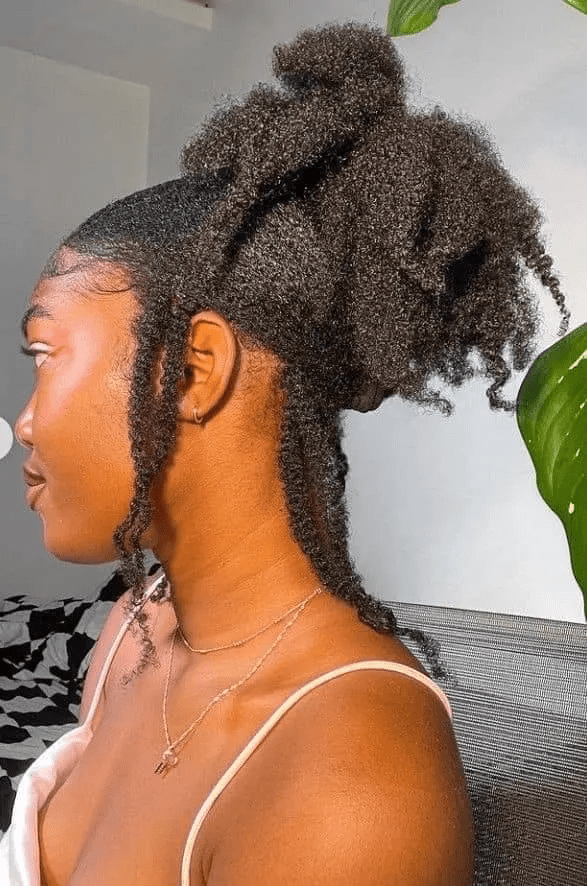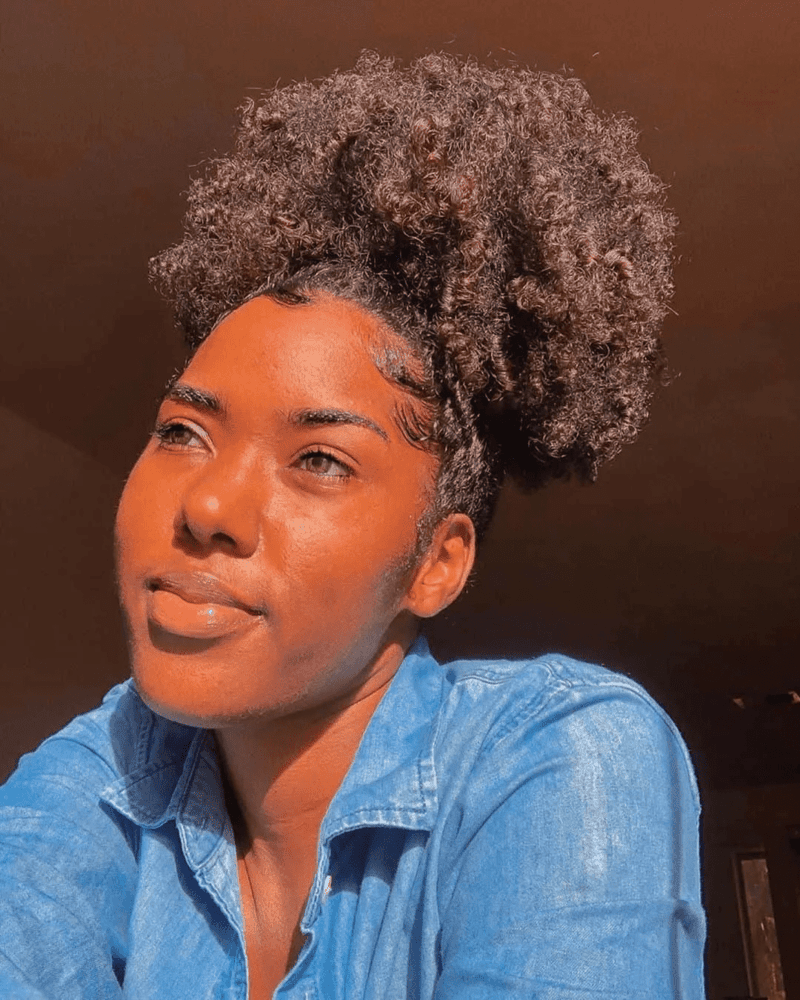 If you’re short on time or having a laid-back natural hair day, a puff is a quick and easy option. Start by combing your hair and applying leave-in conditioner, then use gel to smooth it down.