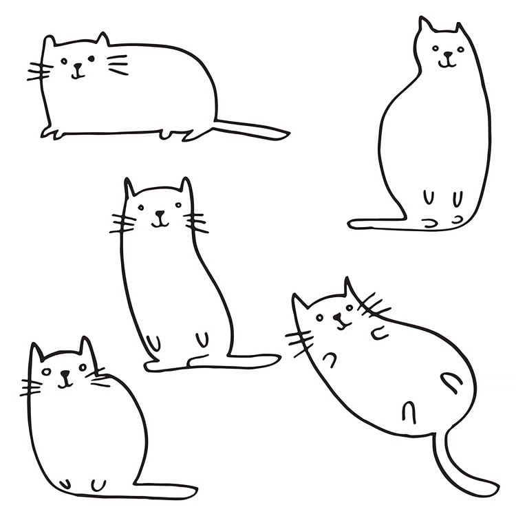 Draw five happy cats, each with a unique facial expression. This is a fun and creative way to explore simple doodles with personality.