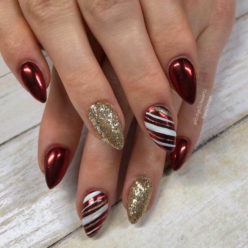 The swirling gold design combined with a holographic chrome finish creates a mesmerizing, multidimensional effect that catches the light and adds a touch of luxury to your nails.
