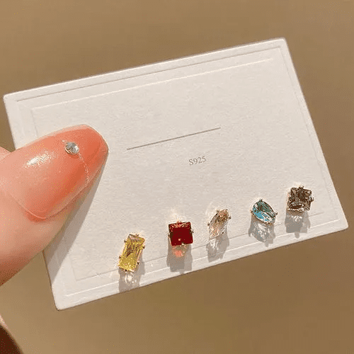 Set of 5 Rhinestone Stud Earrings: $12.40