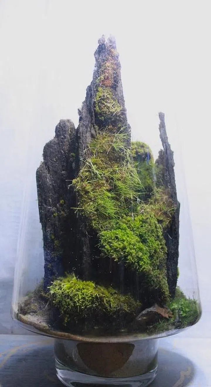 Draw inspiration from the aesthetics of Chinese paintings by incorporating longer-leafed moss to achieve a draping effect that mimics plants cascading from a cliff face. It’s like crafting a miniature green masterpiece within your jar. Who knew a terrarium could evoke such a sense of Zen?