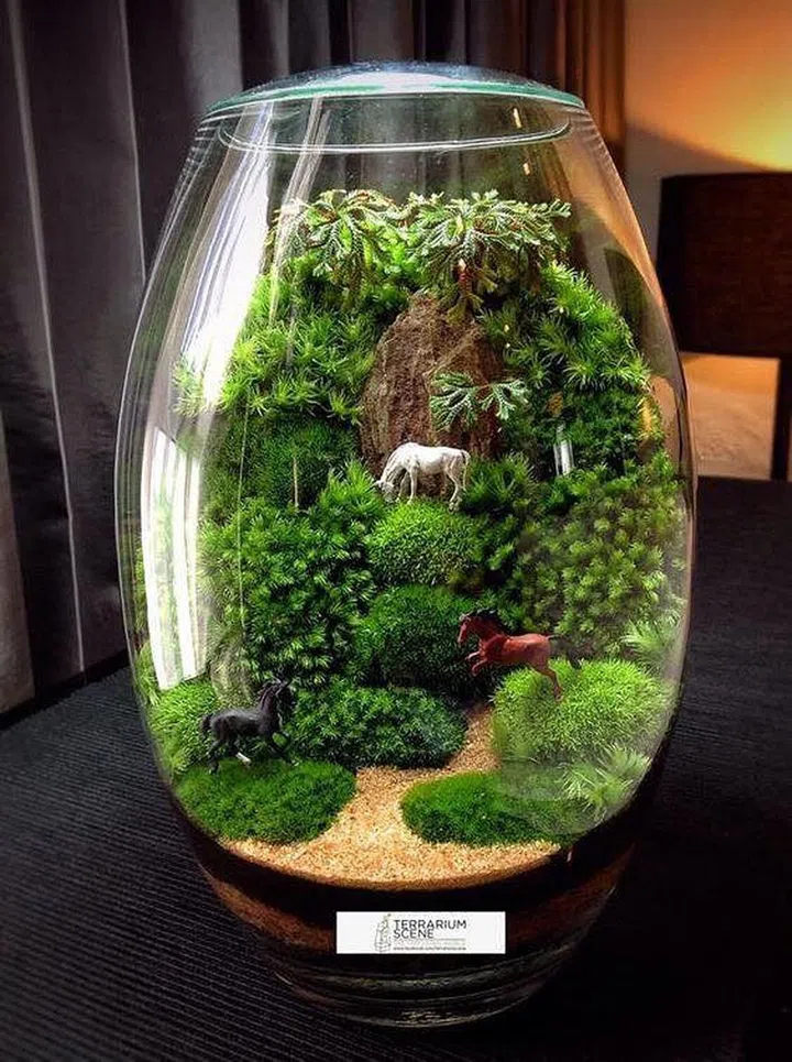 Alternatively, you can design a Jurassic Park-themed jar using toy dinosaurs and dried lichen! This instantly brings an ancient jungle atmosphere to life, transforming your terrarium into a time machine that transports you back to the age of the dinosaurs.